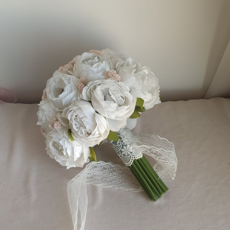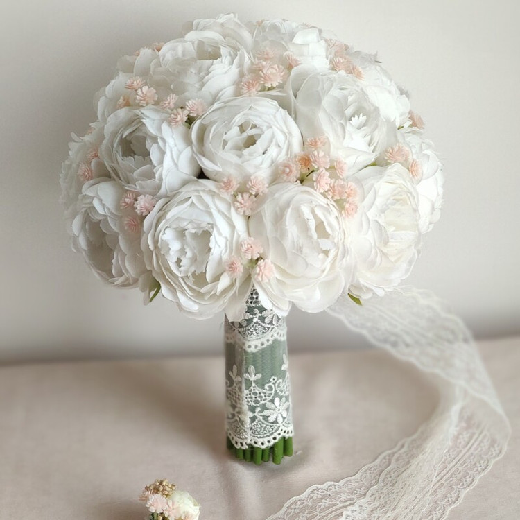 دسته گل مصنوعی گل پیونی کیفیت بالا ترکیب با گل عروس صورتی